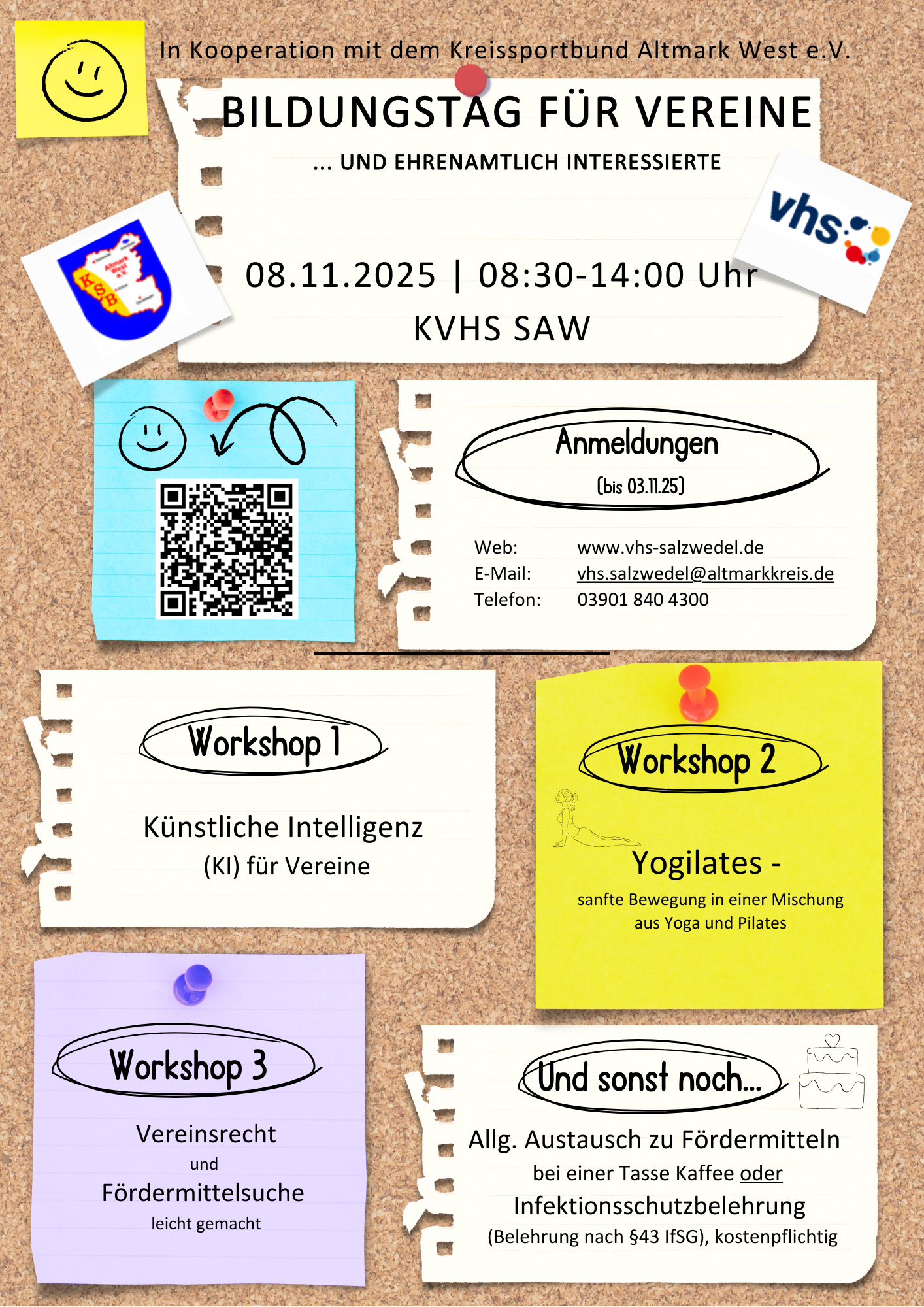 ab 05.11.2025 ,17:00 - 20:15 Uhr. Kursort: VHS-Gebäude Salzwedel